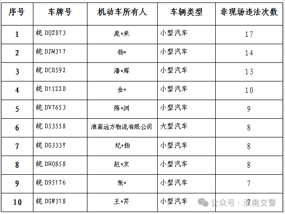 为全力营造安全、畅通、有序的道路通行环境,2025年2月份,淮南市公安交警支队持续保持高压严管态势,加大对各类严重交通违法查处力度,为全体市民创造一个平安畅通的出行环境。今日,淮南公安交警曝光违法最多车辆、终生禁驾人员,公布事故多发点段,通报典型交通事故案例,警示广大交通参与者吸取交通事故中的教训,自觉遵守交通法规,敬畏生命、敬畏法律。
