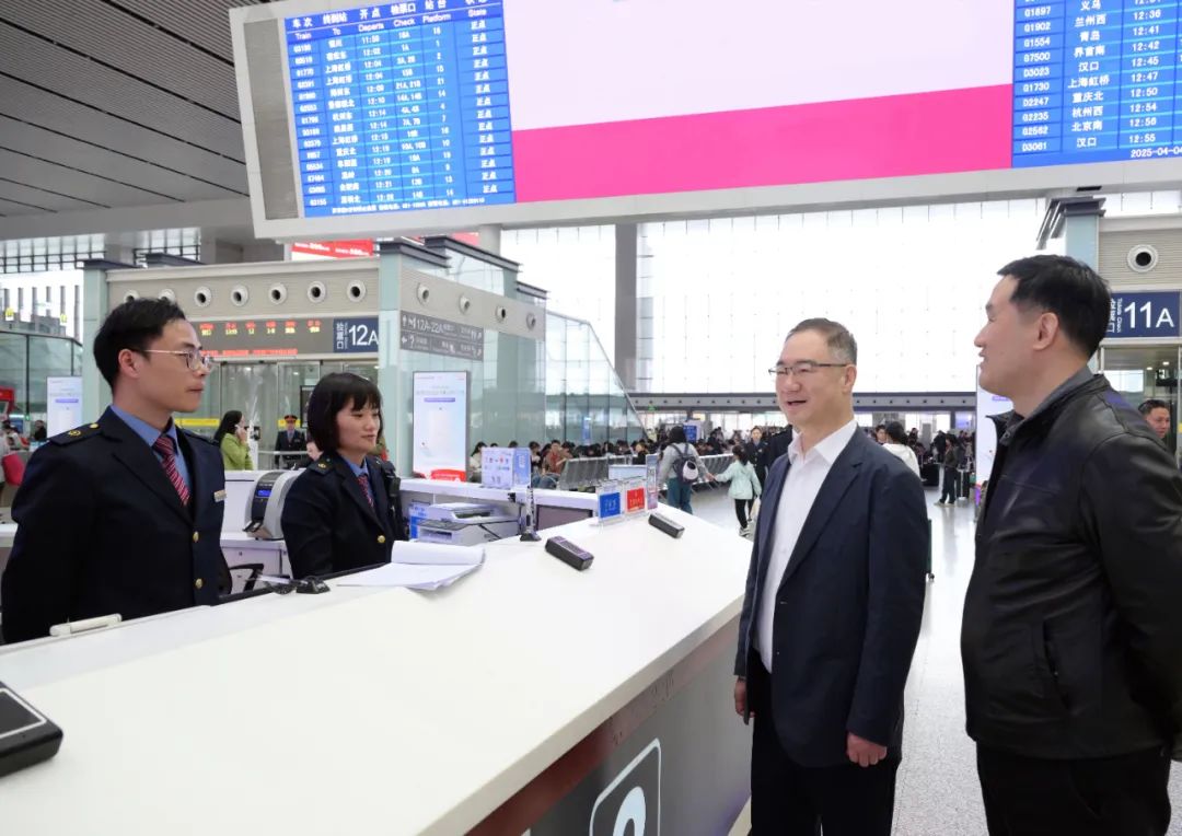 4月4日上午,省长王清宪在合肥南站随机检查假期交通安全情况。高平康 摄