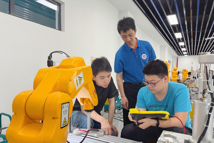 图:安徽工程大学学子在老师指导下开展实训活动