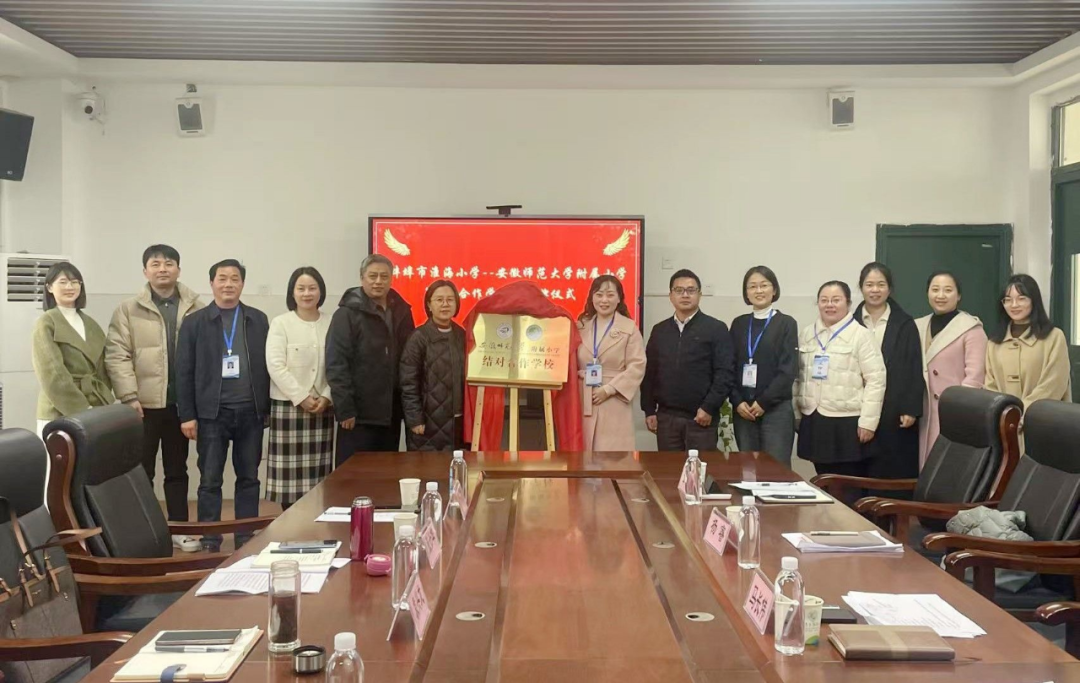图:蚌埠受援学校挂牌“安徽师范大学结对合作校”校牌