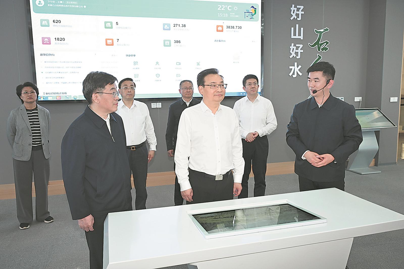 4月9日,省委书记梁言顺在石台县生态硒都会客厅,听取全域旅游、富硒产业发展介绍,察看石台硒产业数字大脑平台运行情况。记者 杨竹 许昊 摄