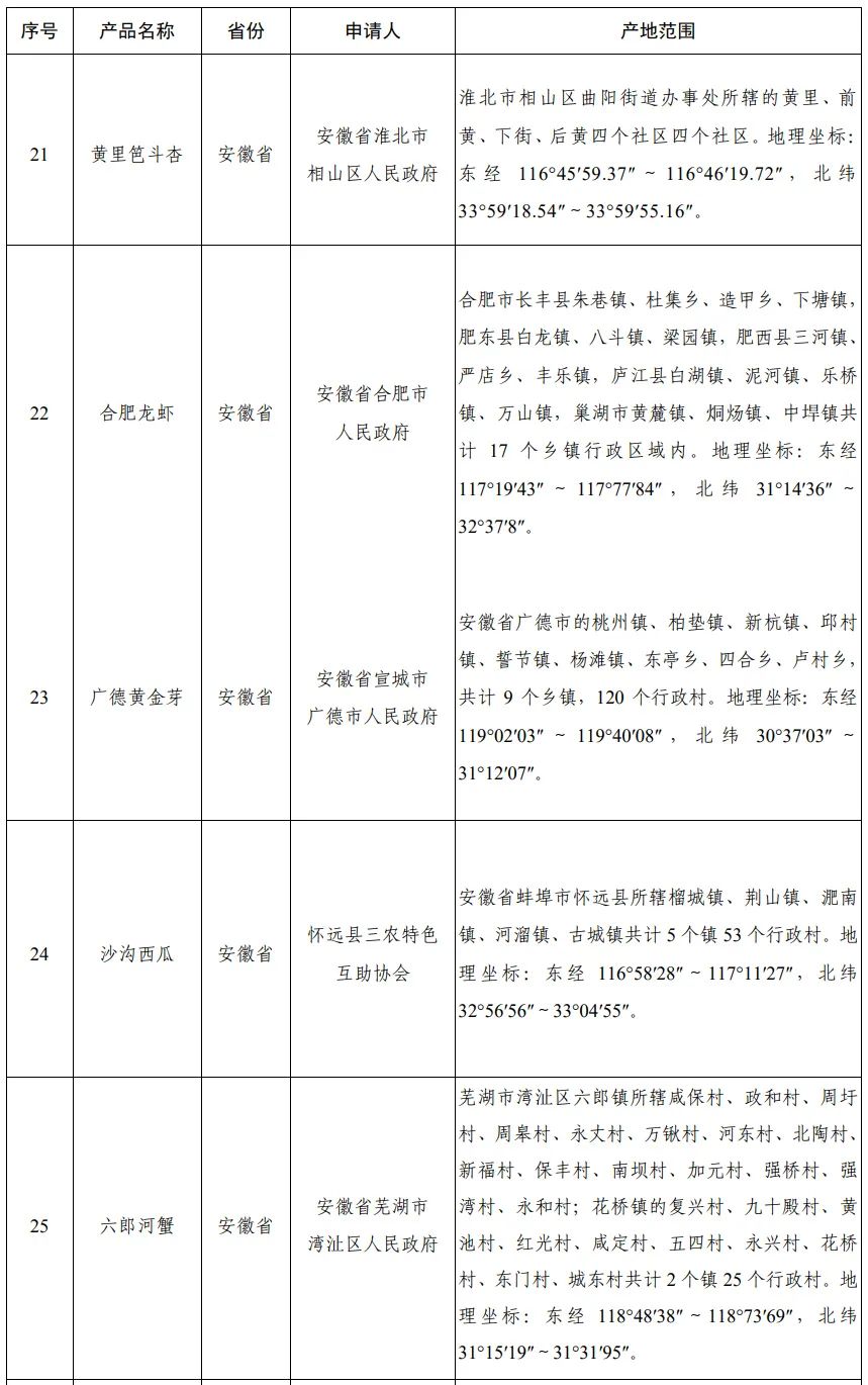 广德黄金芽、沙沟西瓜、六郎河蟹