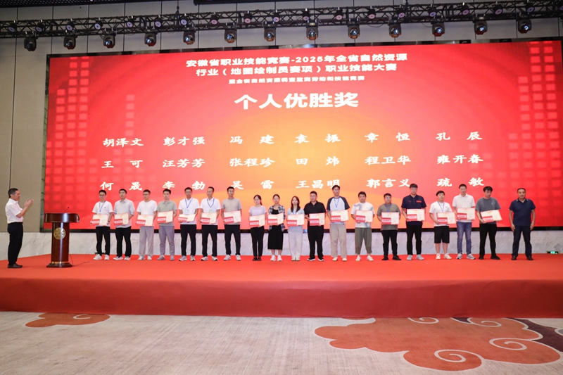 中安在线、中安新闻客户端讯 8月27日至29日,由安徽省自然资源厅、人力资源和社会保障厅、总工会主办,省测绘局承办的安徽省职业技能竞赛—2025年全省自然资源行业(地图绘制员赛项)职业技能大赛暨全省自然资源调查监测劳动和技能竞赛在合肥成功举办。