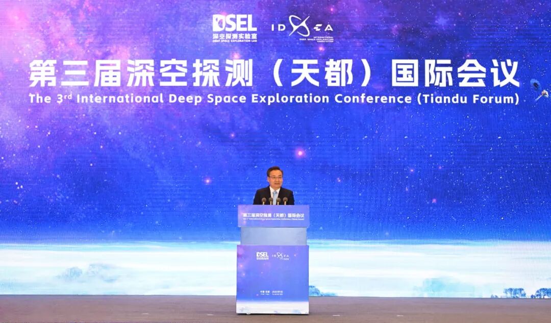 中安在线、中安新闻客户端讯 9月5日下午,第三届深空探测(天都)国际会议开幕式及主旨报告在合肥举行。省委书记梁言顺出席并致辞。中国工程院院士、深空探测实验室主任、国际深空探测学会理事长吴伟仁主持并作主旨报告。约旦驻华大使胡萨姆·侯赛尼,哥伦比亚驻华大使塞尔希奥·卡夫雷拉,省领导费高云、单向前、张曙光、任清华,中国科大校长常进出席。