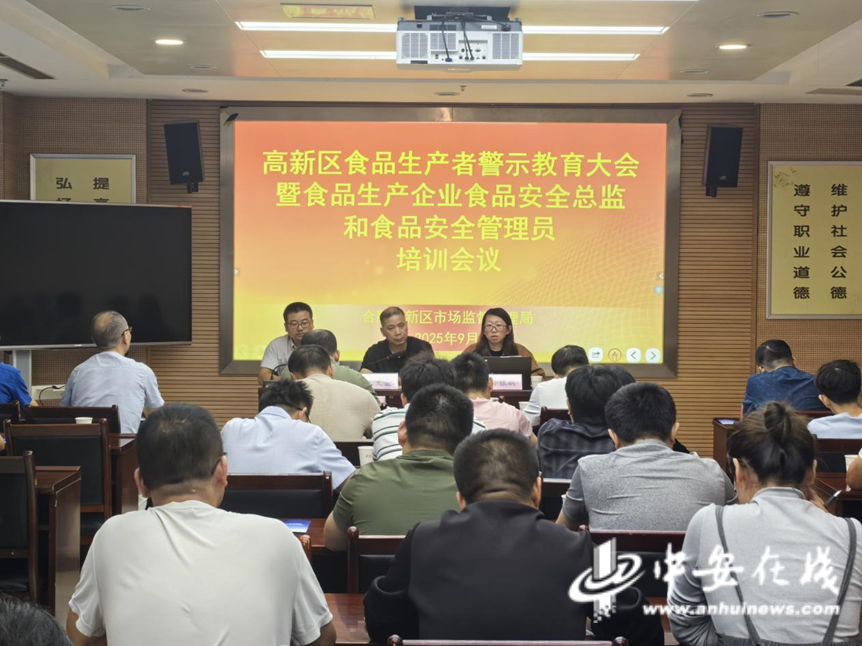 中安在线、中安新闻客户端讯 为进一步推动食品生产企业落实食品安全主体责任,警示近期高风险食品安全隐患,提高食品安全总监和食品安全管理员的管理水平,9月23日下午,合肥高新区市场监督管理局组织召开食品生产企业警示教育大会暨食品安全总监、管理员培训会议。全区食品生产企业食品安全总监、食品安全管理员共计六十余人参加培训。