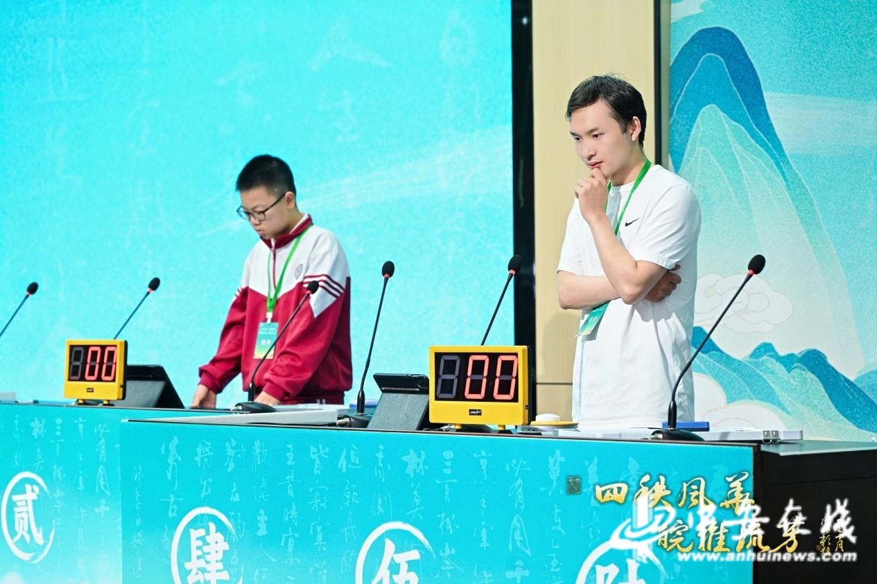 为期三天的赛事分为初赛、复赛、半决赛、决赛与总决赛五个阶段,赛制设计严谨且富有挑战性。初赛阶段,9组选手历经“必答题”“选答题”环节的考验,18人成功突围晋级复赛;10月 3日,复赛与半决赛接连展开,选手们展开激烈角逐,凭借深厚的诗词积累与敏捷的思维反应,最终4人脱颖而出闯入决赛;10月4日上午,决赛与总决赛迎来高潮,4名选手两两对决,从“对对子”到“飞花令”,每一轮比拼都展现出扎实的文学功底与对诗词的深刻理解。最终,经过多轮激烈比拼,来自海选队的选手郭精金斩获冠军,合肥队周远航获得亚军,杏花村队周成、安庆队汪有缘获得季军,其余选手分别获得“安徽省诗词达人”“安徽诗词秀士”荣誉称号。
