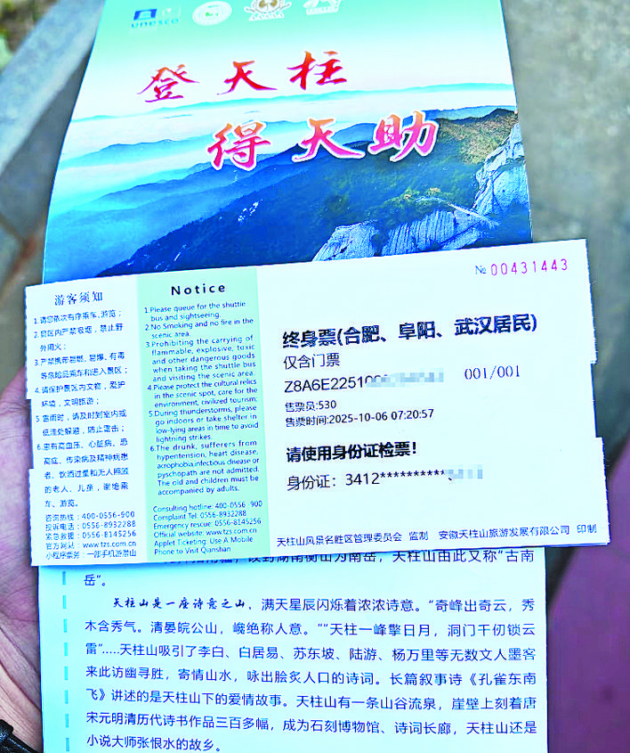 记者在社交平台看到,最近几天,已经有不少合肥游客,拿到了天柱山风景区的“终身票”。