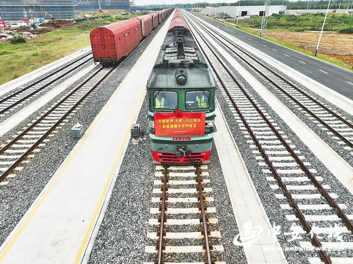9月22日,合肥北城铁路综合物流园里,290台“合肥造”新能源汽车搭乘中欧班列JSQ笼车专列启程,16天后抵达哈萨克斯坦阿拉木图。