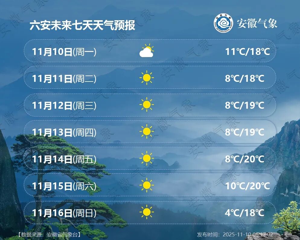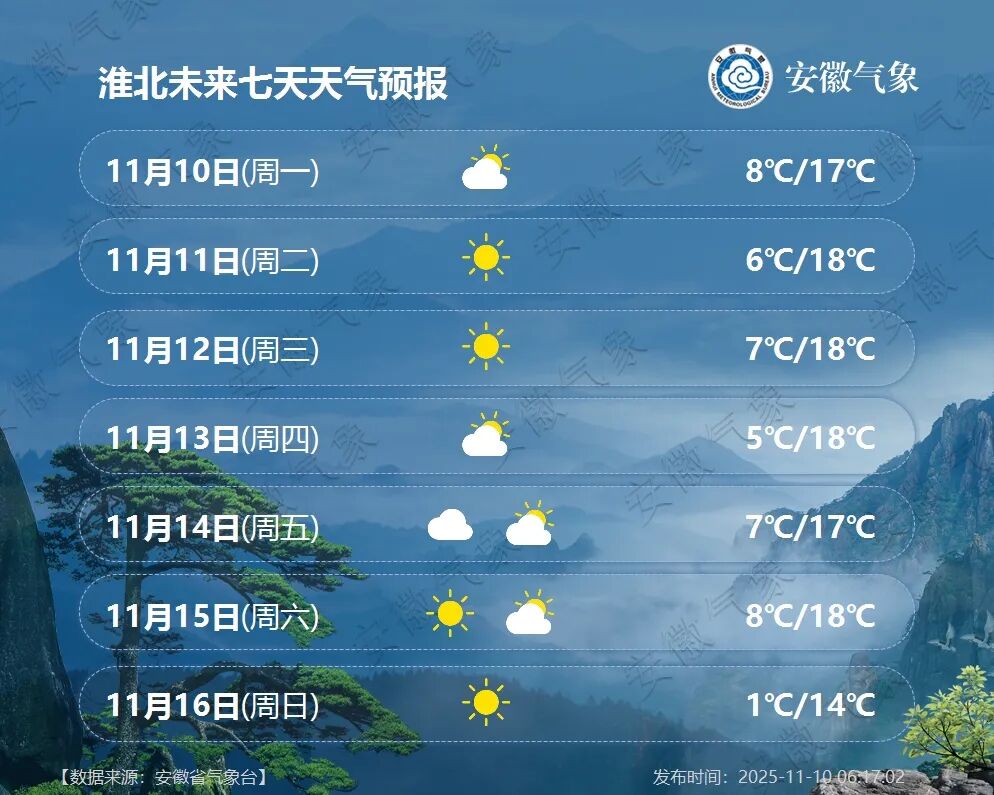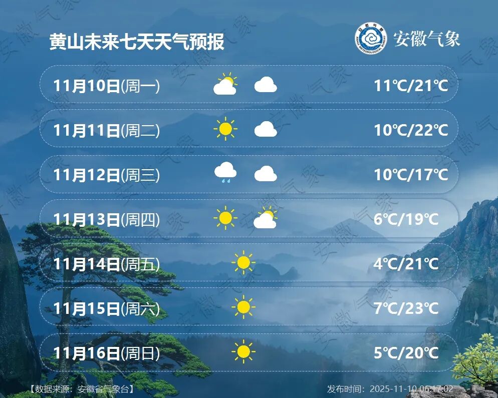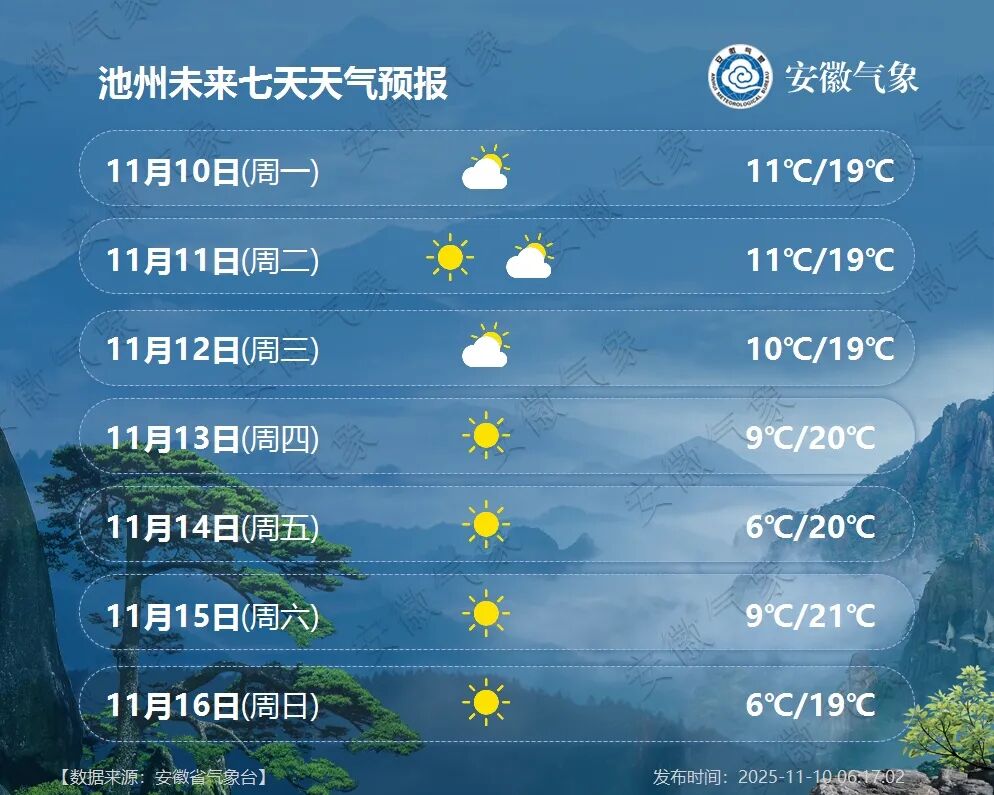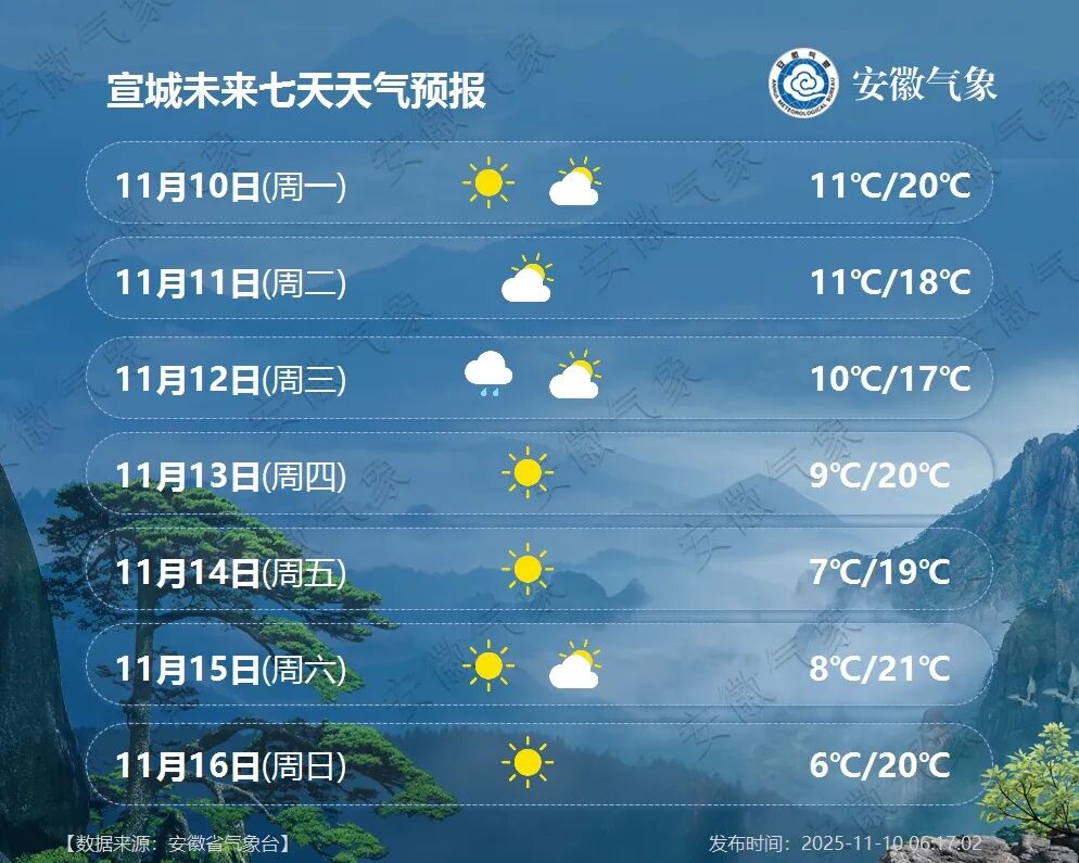 11日(周二):江北多云到晴天;江南多云到阴天,南部局部地区有小雨。