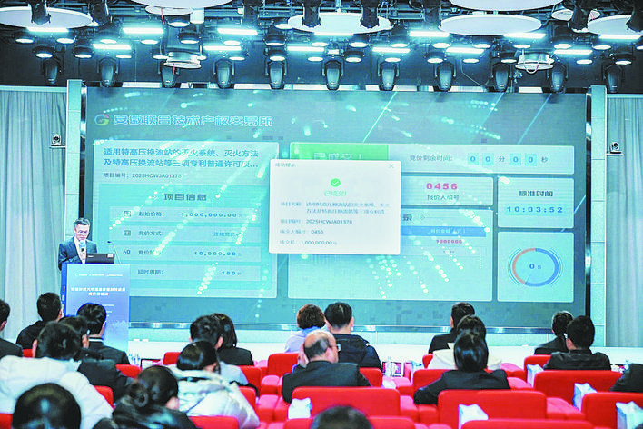 当天,3项成果完成竞价成交。其中包括电气设备高性能热防护涂层及封堵材料技术成果普通许可项目,以及适用特高压换流站的灭火系统和灭火方法等三项专利普通许可项目。