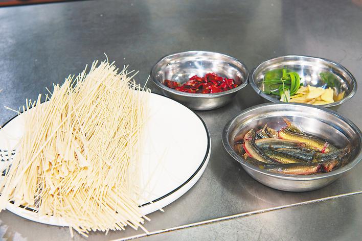 烹饪环节更是讲究:生姜、料酒、醋去腥增香,辣椒、八角、蚕豆酱激发风味,泥鳅与调料一同下锅炒至焦黄,加水大火烧开后转中火慢炖,直至汤汁浓酽、香气扑鼻,再下入手工挂面大火翻滚片刻,一碗色香味俱全的泥鳅挂面便新鲜出炉。
