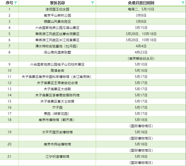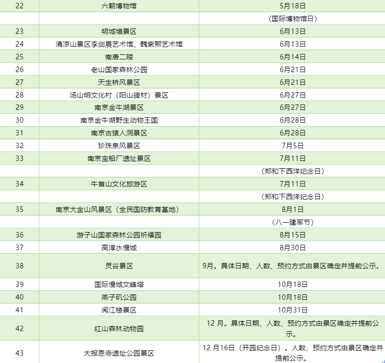 1月6日,南京市发改委公布了2026年度实行政府指导价管理的景区免费开放日,今年有43个旅游参观点参与了免费开放日活动。