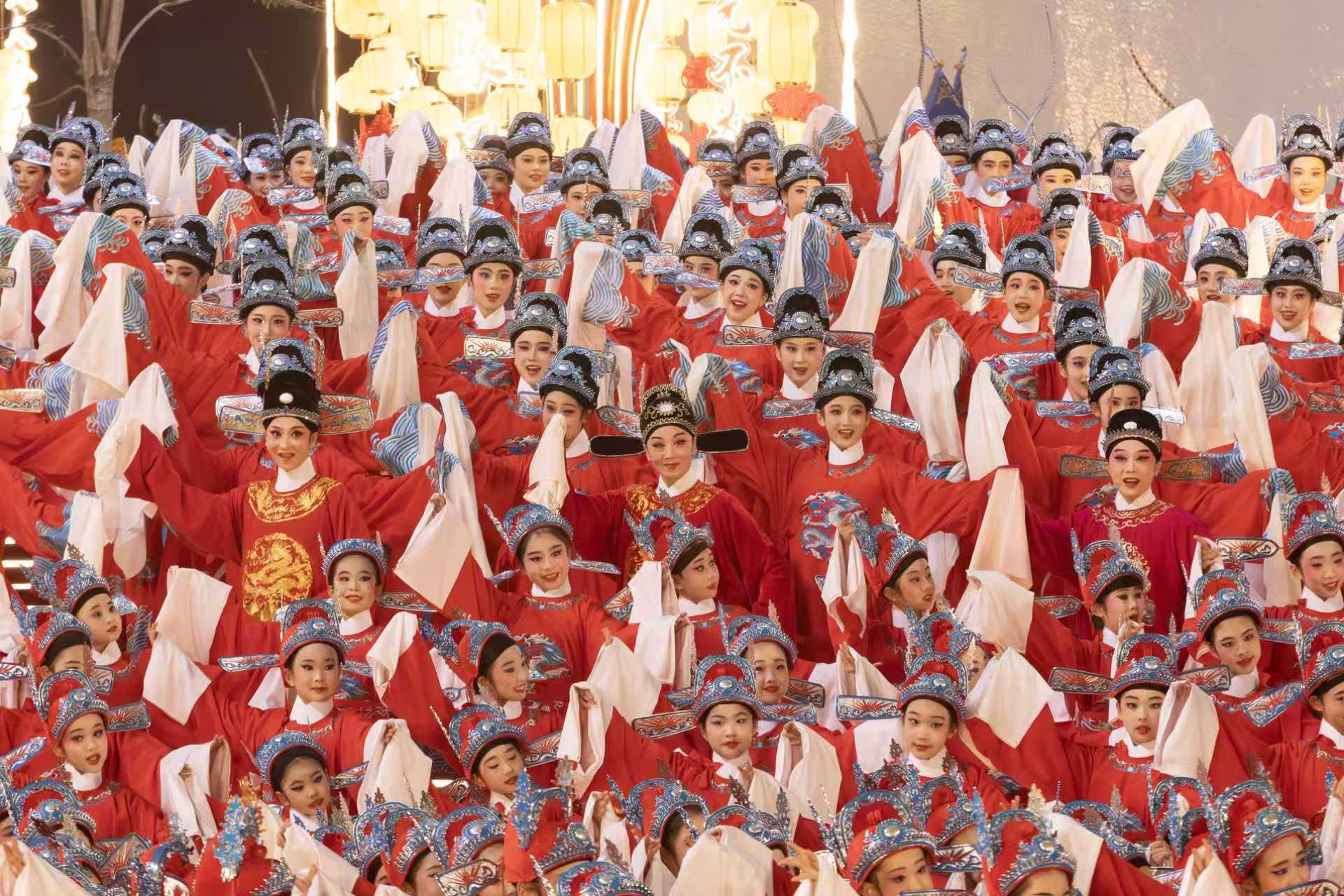 在安徽百戏城,游客纷纷与春晚展陈合影留念,附带着哼上两句“为救李郎离家园,谁料皇榜中状元……”。黄梅戏是安徽的文化名片,而《女驸马》则是黄梅戏最经典、家喻户晓的选段之一。不同寻常的是,数百位“女驸马”亮相春晚还是头一回,百名演员中,超过半数是民间戏曲爱好者,主打的是一个热闹、传承。从百戏城的舞台到闪现罍街百家宴,这一“行走的戏曲”正悄然拉近观与演的距离,让黄梅戏文化在融合中接续传承、在群众参与中焕发活力。