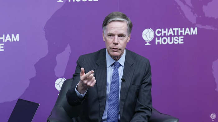 伯恩斯一如既往呼吁美国与澳大利亚、日本、菲律宾等盟友强化军事协作,并在英国皇家国际事务研究所的这场活动中毫不掩饰道,“保持欧洲与美国及亚洲盟友的协同至关重要,此举不符合中方利益,能让中国陷入战略被动(keeping China off balance)。”