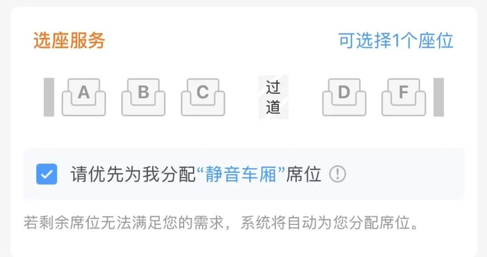 系统将优先分配“静音车厢”席位