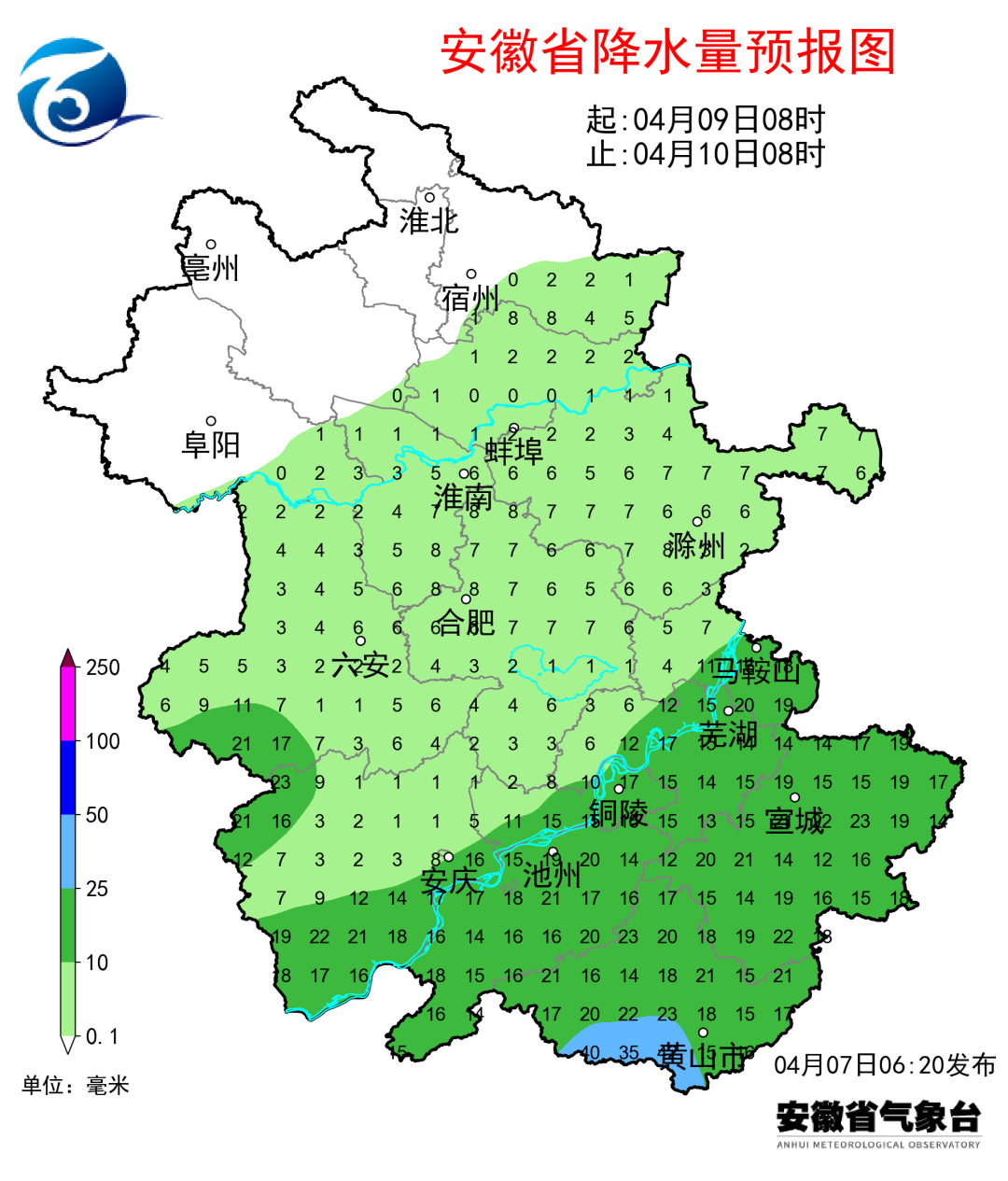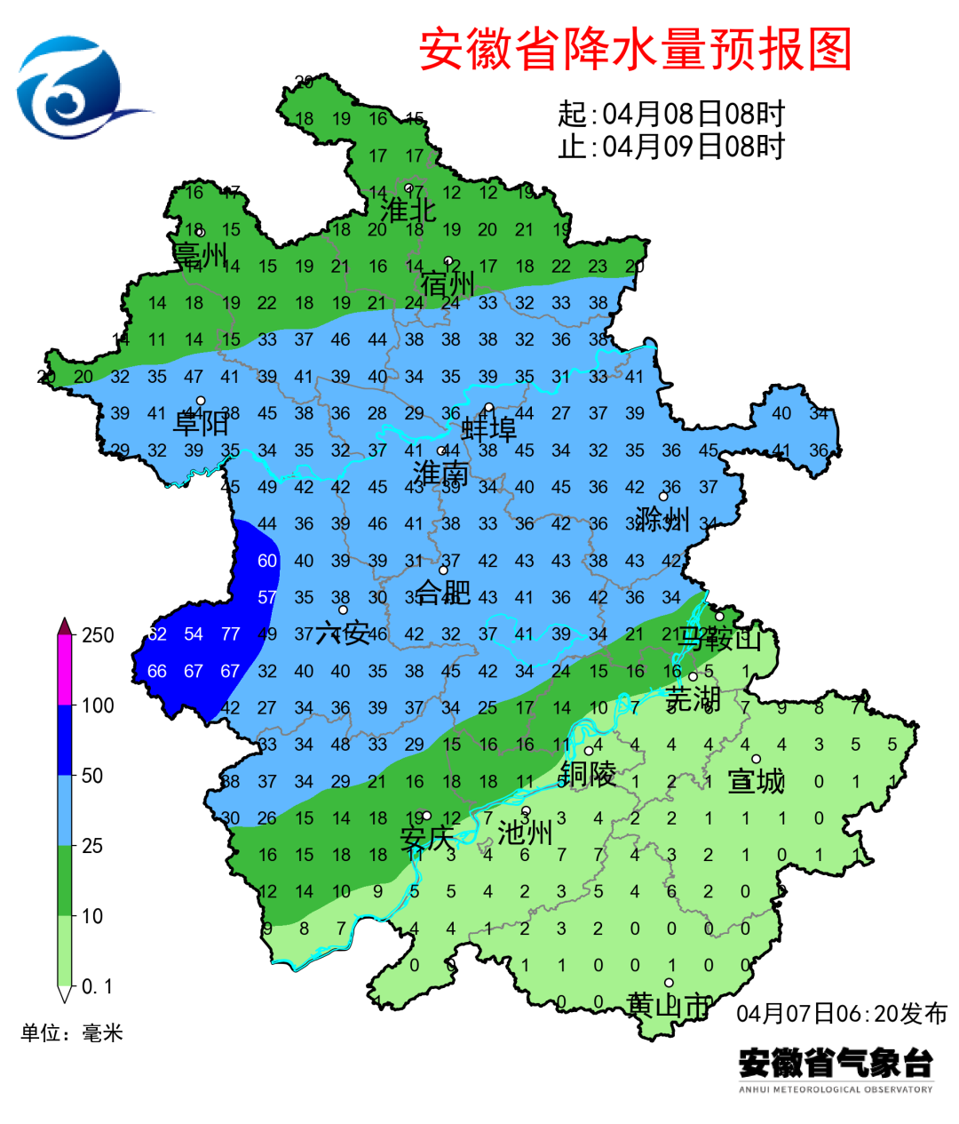 中央气象台预报:预计4月8日至9日,江汉、江淮、江南北部及重庆等地有中到大雨,局地暴雨或大暴雨,降雨最强的时段将出现在8日中午到9日中午。过程中,还会伴随强对流天气,尤其是湖北、湖南、安徽等地可能出现8至11级的雷暴大风,并伴有小冰雹和短时强降水。