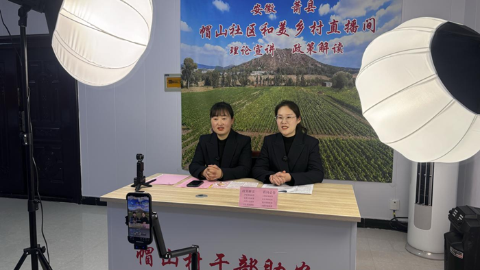 中安在线、中安新闻客户端讯 “欢迎来到帽山社区和美乡村直播间,养老保险、低保、医保问题,大家尽管问……”每天下午3点,萧县龙城镇帽山社区的直播间准时开播。乡村振兴专干赵皖红、网格员杨佩化身主播,用家乡话把政策讲透、把实事办实,让小小直播间成为干群连心、助农增收的新阵地。