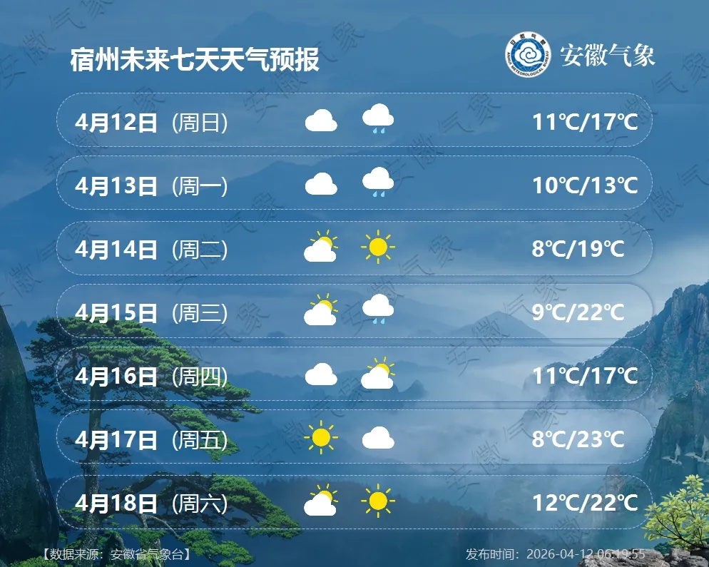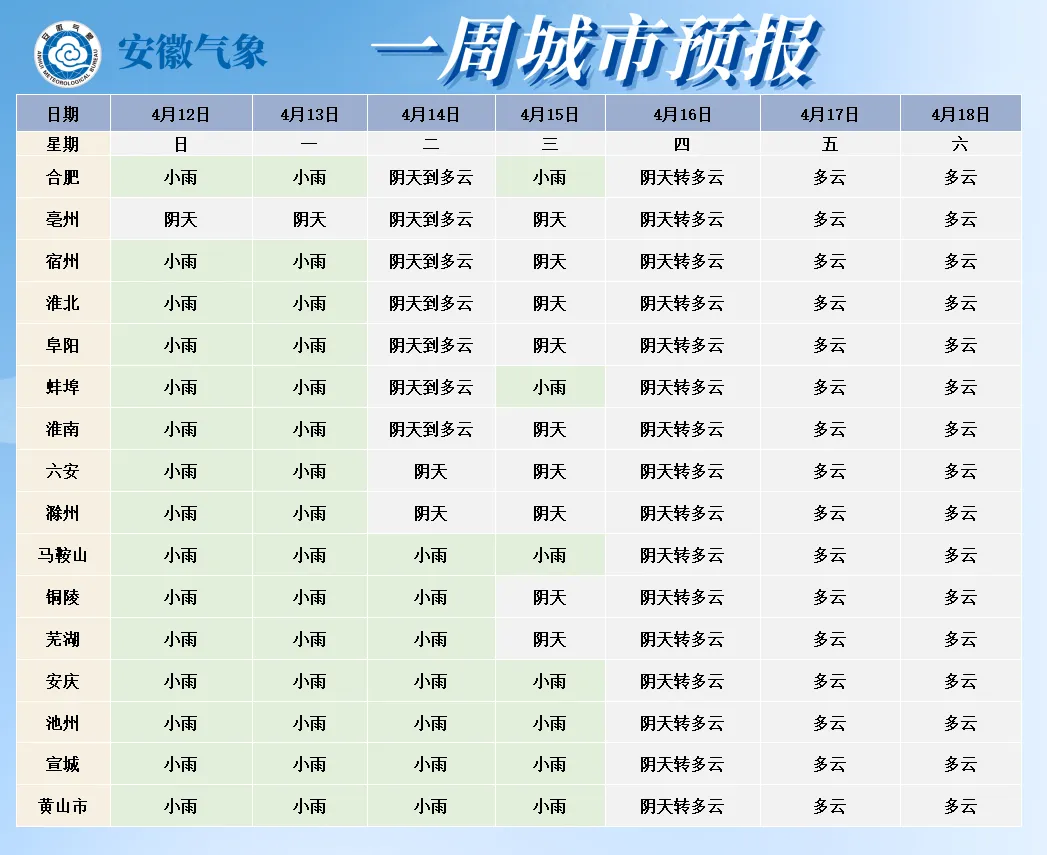 安徽主要城市一周天气预报