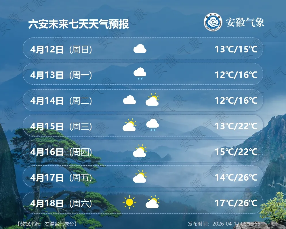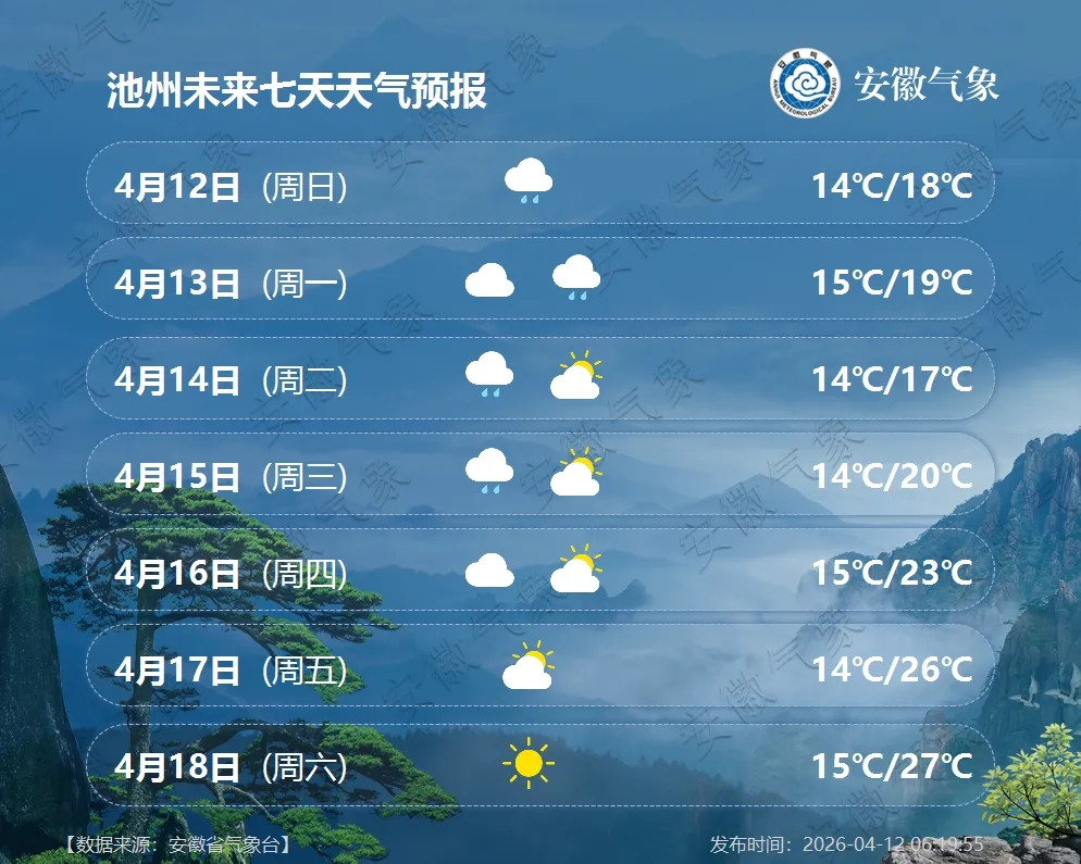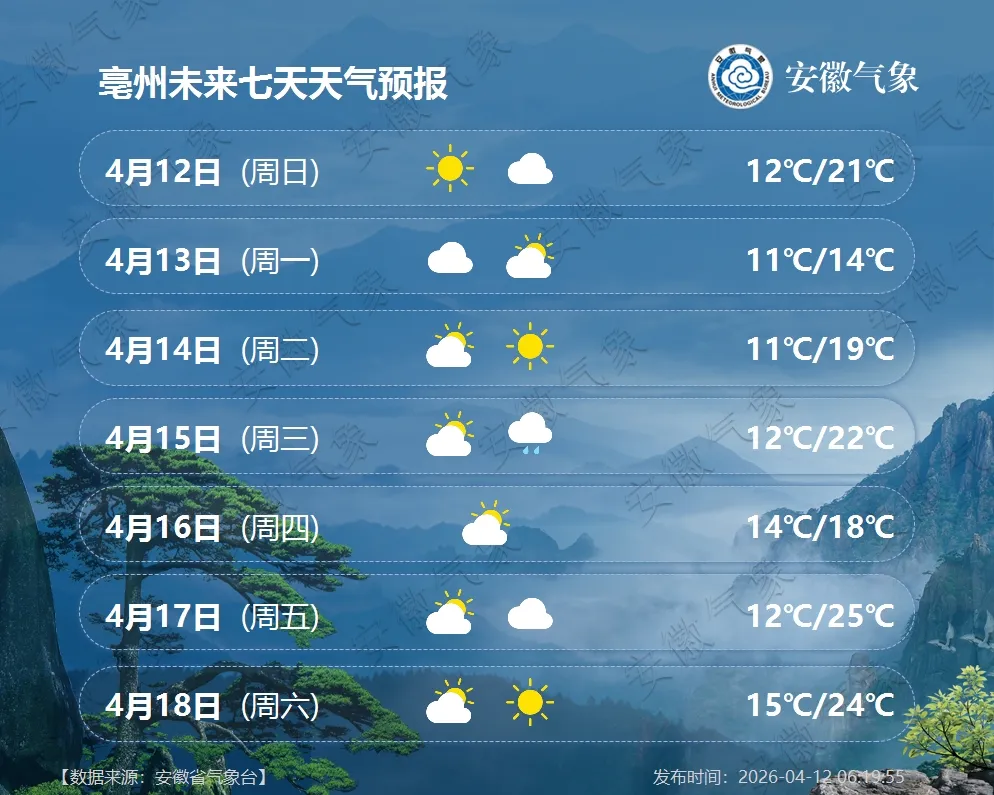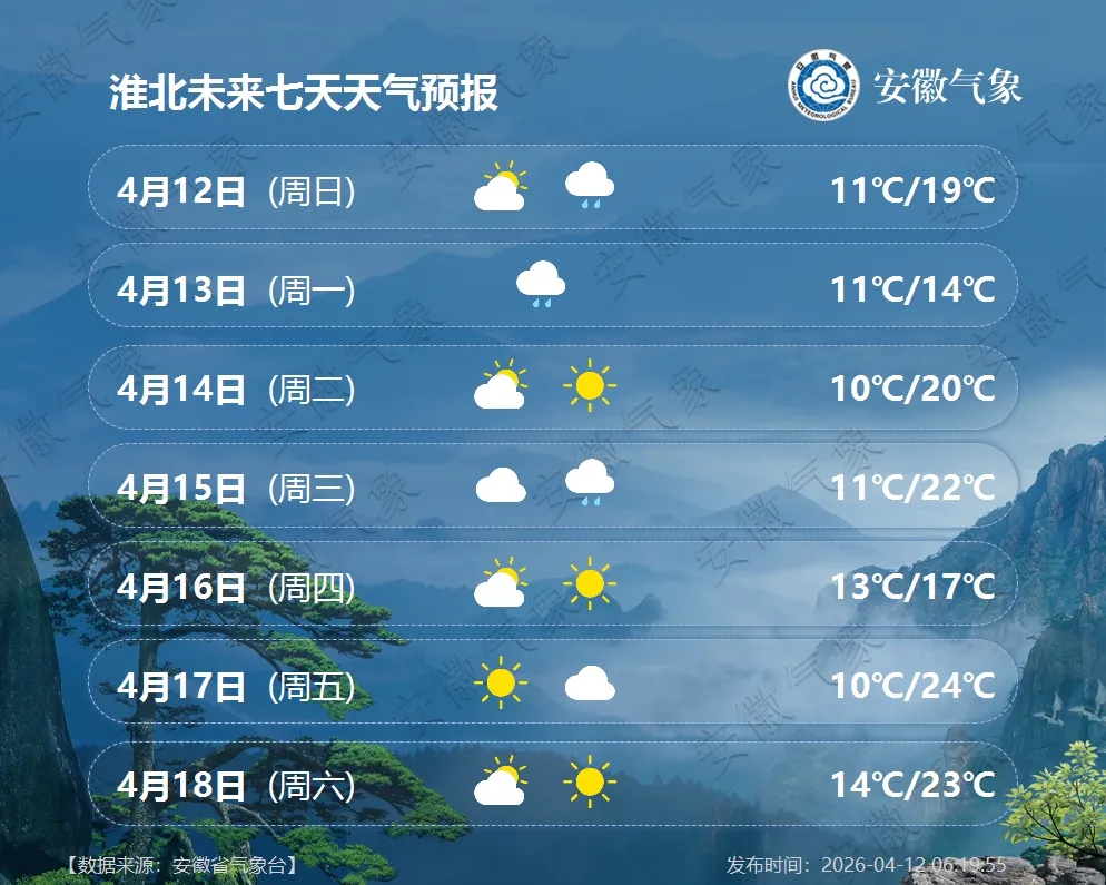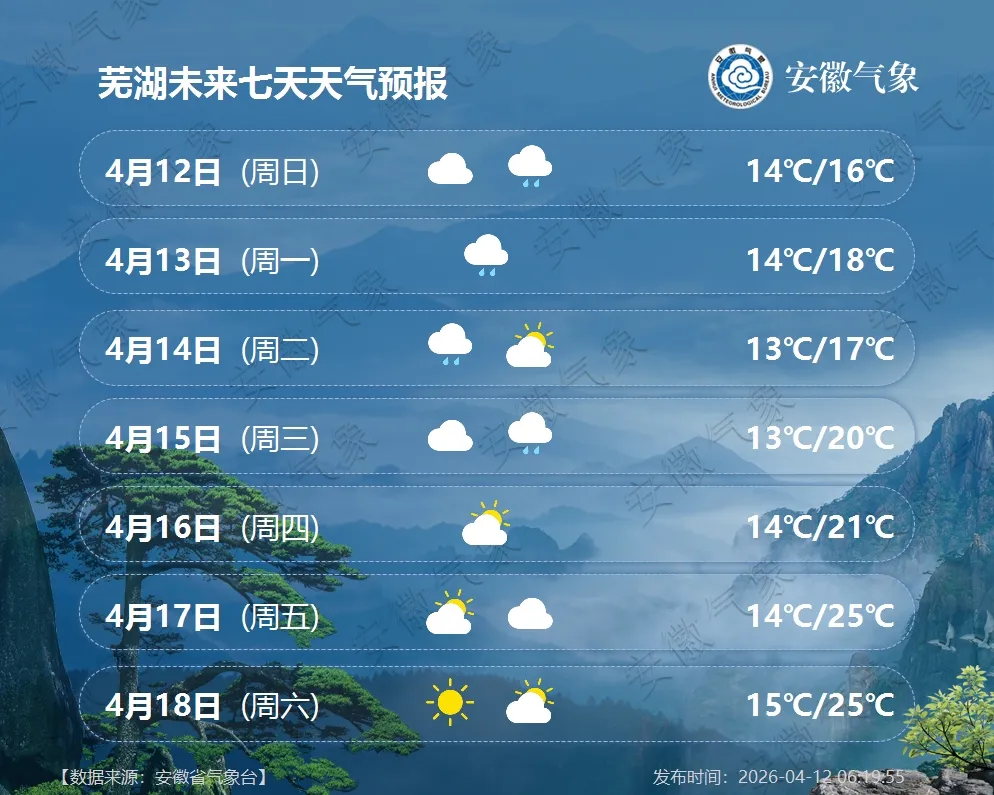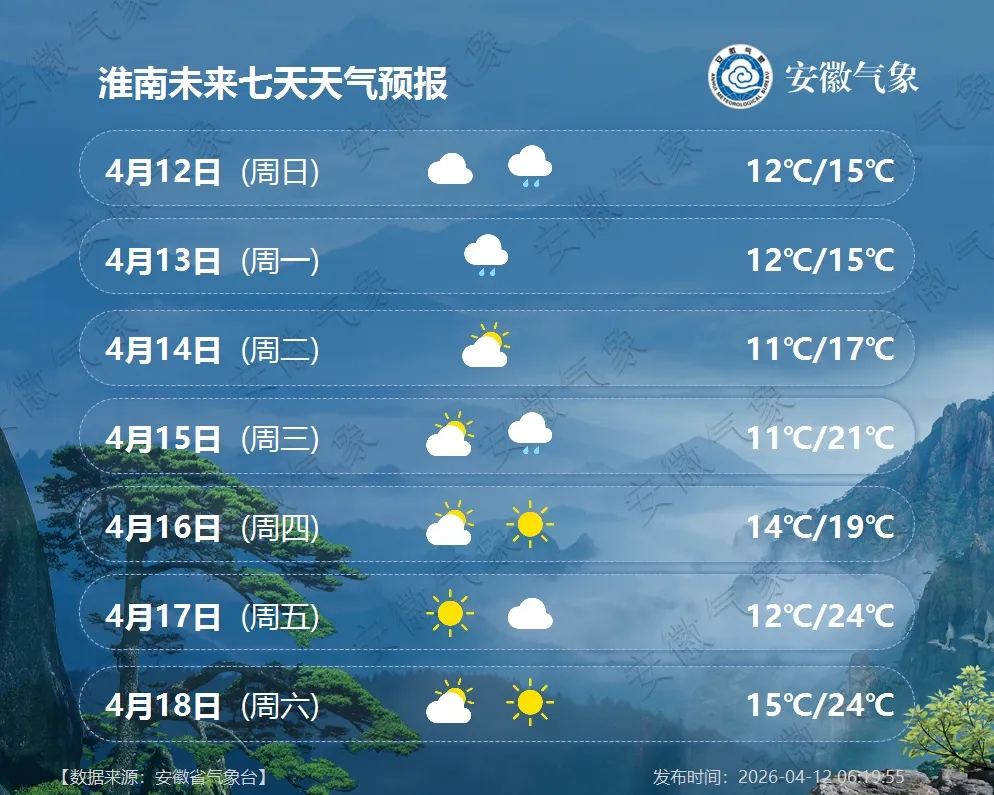 气温预报:13日前后有一股弱冷空气影响我省北部,江北最高气温将下降3~5℃;14日后气温逐渐回升,全省最高气温22℃以上。