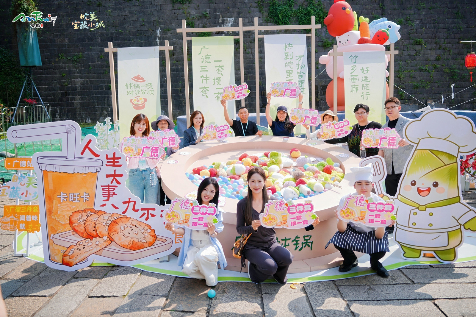 三大沉浸式打卡区将小城的烟火日常直接“搬”到南京:庐江茶香展区雅韵十足,青阳萌宠露营区轻松惬意,广德的巨型炖锅创意装置前人流不断,游客手持筷子,挑战从锅中夹取小玩偶,气氛热烈欢快。
