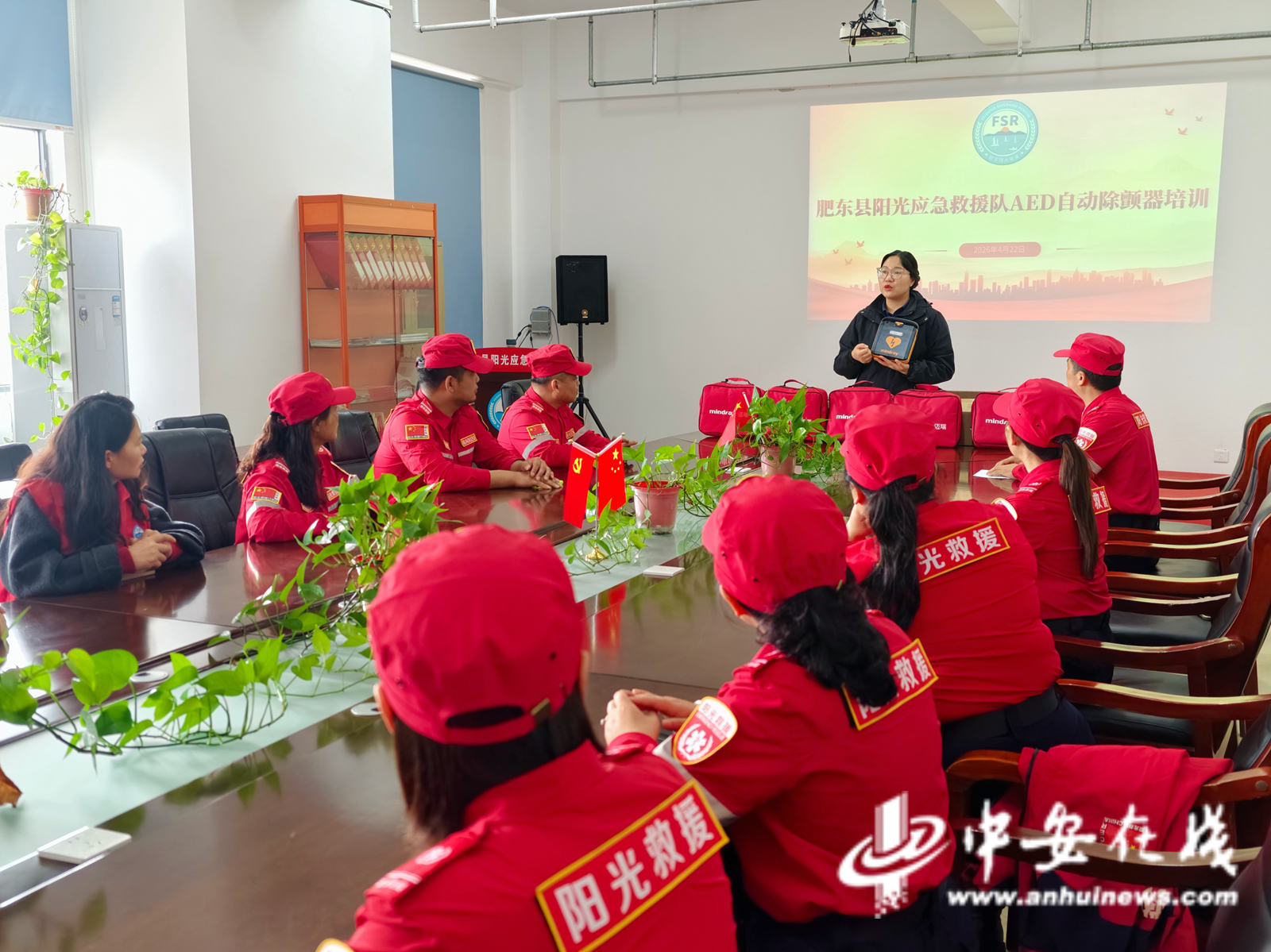 专业人员正在为肥东县阳光应急救援队的队员进行车载AED设备使用培训