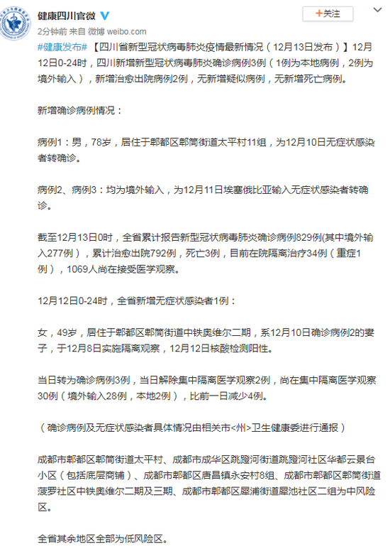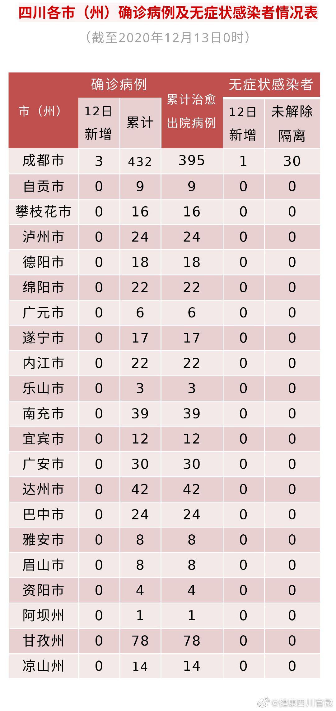 原标题:四川省新型冠状病毒肺炎疫情最新情况(12月13日发布)
