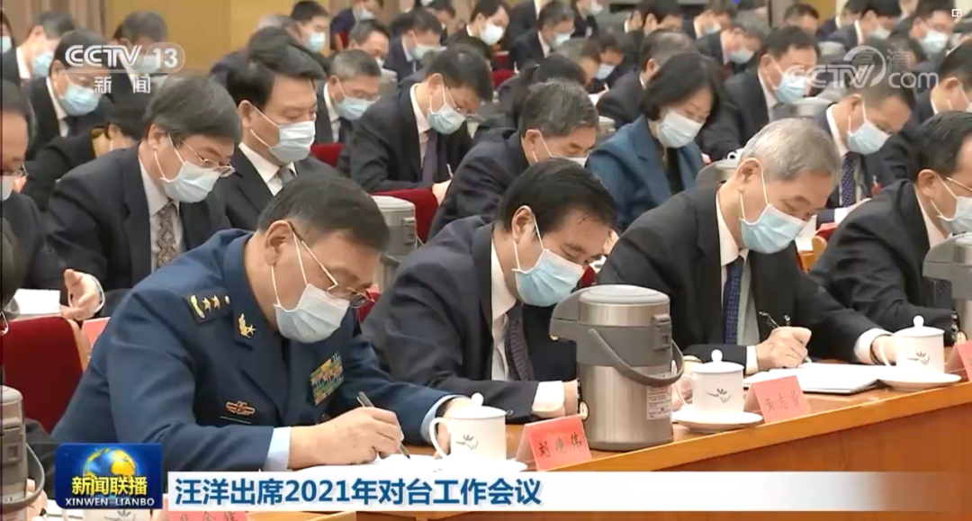 据《新闻联播》披露,1月17日至18日,2021年对台工作会议在北京举行。中共中央政治局常委、全国政协主席汪洋出席会议并讲话。
