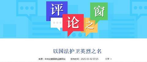 海外网3月2日电今日,中央纪委国家监委网站刊发评论文章《以国法护卫英烈之名》,全文如下: