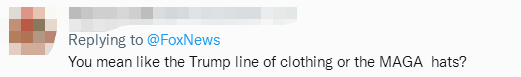 有网友讽刺说:“你的意思是说像特朗普系列的衣服或者MAGA(让美国再次伟大)帽子(也是中国制造)?”