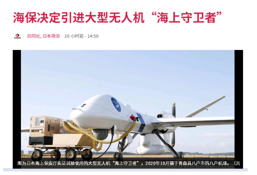 在对美国“海上守卫者”无人机进行了一年多的试用后,日本最终确定将引进这种大型无人机,用于监视“在钓鱼岛附近活动的中国海警船”。