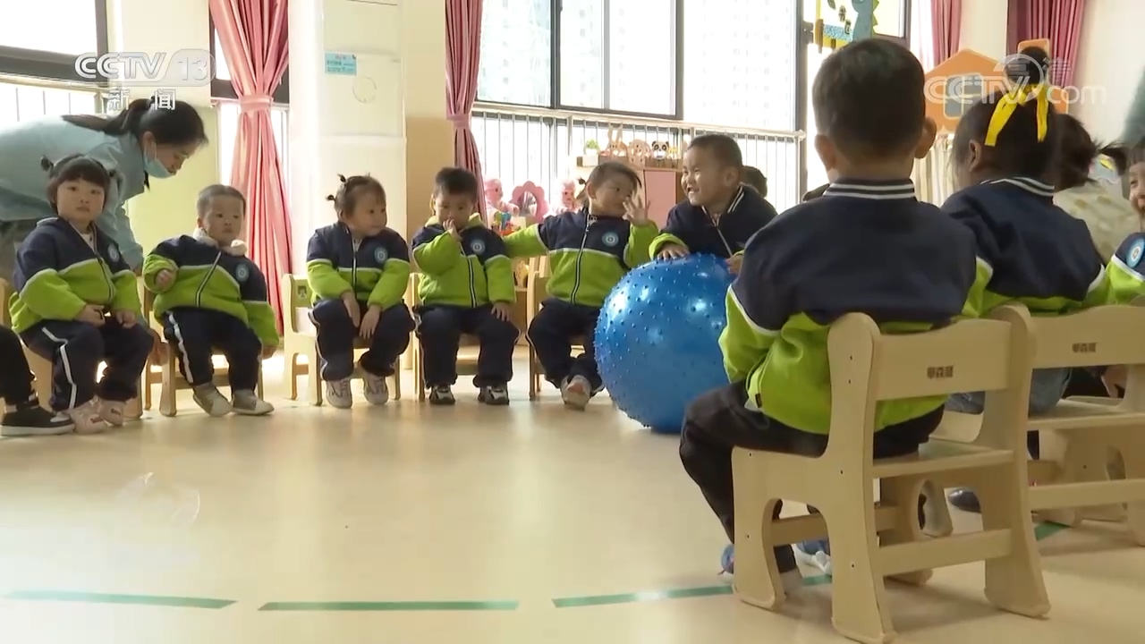 在合肥市蜀山区的十里庙社区普惠托育园,老师带着孩子们在做手指操。这家托育机构由社区提供场地,专业托育机构负责师资和运营。