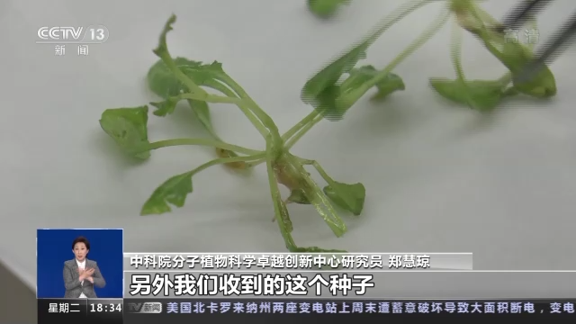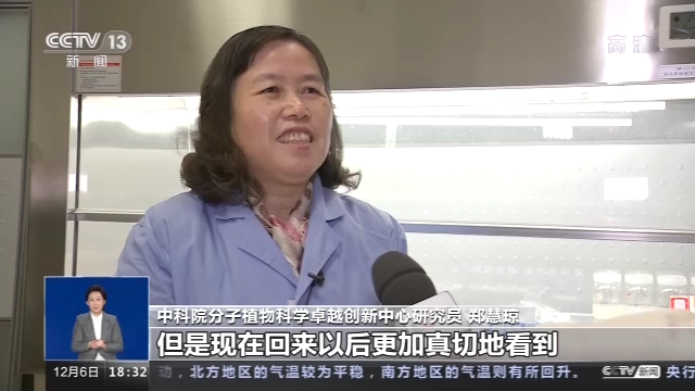 中科院分子植物科学卓越创新中心研究员 郑慧琼:冷冻的植株,我们要进行一些组学分析报告,它的转录组研究它的基因表达分析,还做一个蛋白质组分析,这个蛋白质它的变化,另外我们收到的这个种子,我们希望一方面能看到它后代的活力怎么样,能不能萌发,另一方面也希望看到它的营养物质有没有什么变化,后续也要做进一步分析。