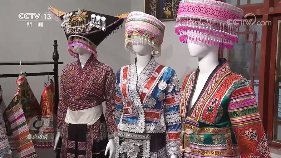 杨文丽,化屋村里的苗绣致富带头人。快过节了,这是她节前要送出的最后一套定制苗族传统服饰。不到30岁的杨文丽已经有20多年绣龄,手艺是从姥姥和妈妈那儿一针一线传下来的。